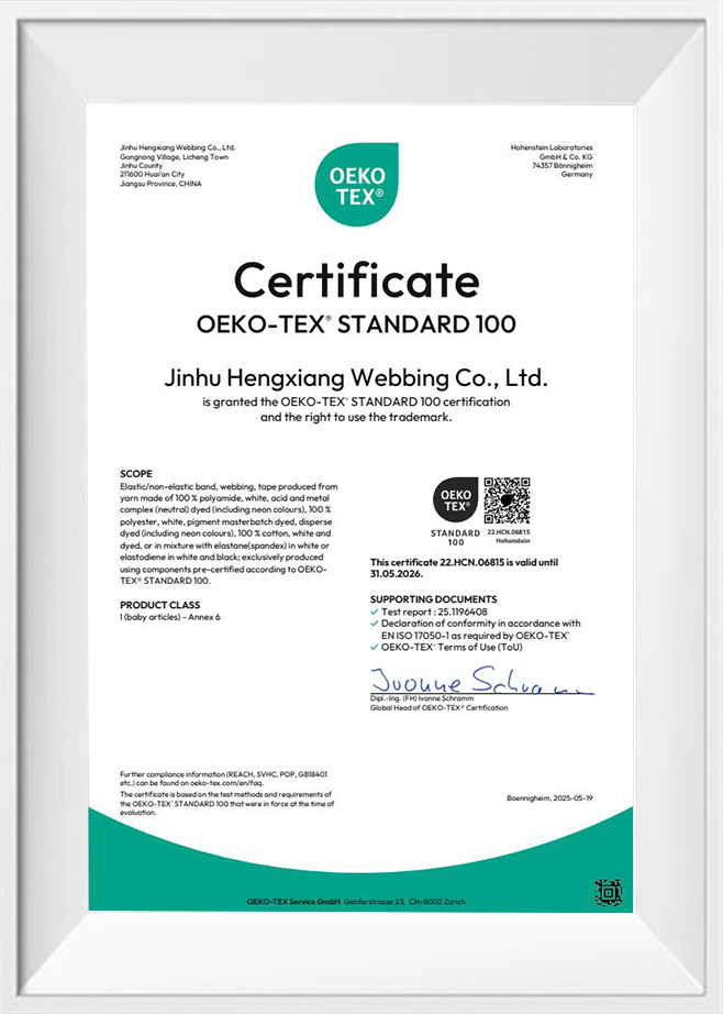 Trong những năm gần đây, công ty chúng tôi đã giới thiệu và nâng cấp một loạt thiết bị sản xuất tiên tiến, bao gồm máy dệt dọc, máy dệt kim, máy dệt thoi và máy đóng gói. Hiện nay, chúng tôi sản xuất hàng triệu mét dây đai đàn hồi và dây đai không đàn hồi mỗi tháng và tự hào khẳng định rằng tất cả sản phẩm của chúng tôi đều đáp ứng tiêu chuẩn chất lượng quốc tế nghiêm ngặt. Ngoài ra, chúng tôi đã đạt được chứng chỉ Oeko-Tex Standards 100 và chứng chỉ ISO 13485, thể hiện hơn 20 năm kinh nghiệm chuyên môn trong sản xuất của chúng tôi. Sản phẩm của chúng tôi bán chạy ở tất cả các thành phố và tỉnh thành trên khắp Trung Quốc, đồng thời được xuất khẩu sang khách hàng tại các quốc gia và khu vực như Bắc Mỹ, Đông Âu, Trung Đông và Nam Á. Chúng tôi cũng hoan nghênh các đơn đặt hàng của OEM và ODM.